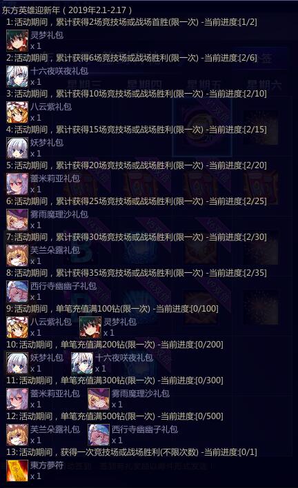 1.累计获得2场竞技场或战场首胜,可获得非卖英雄博丽灵梦(限一次);